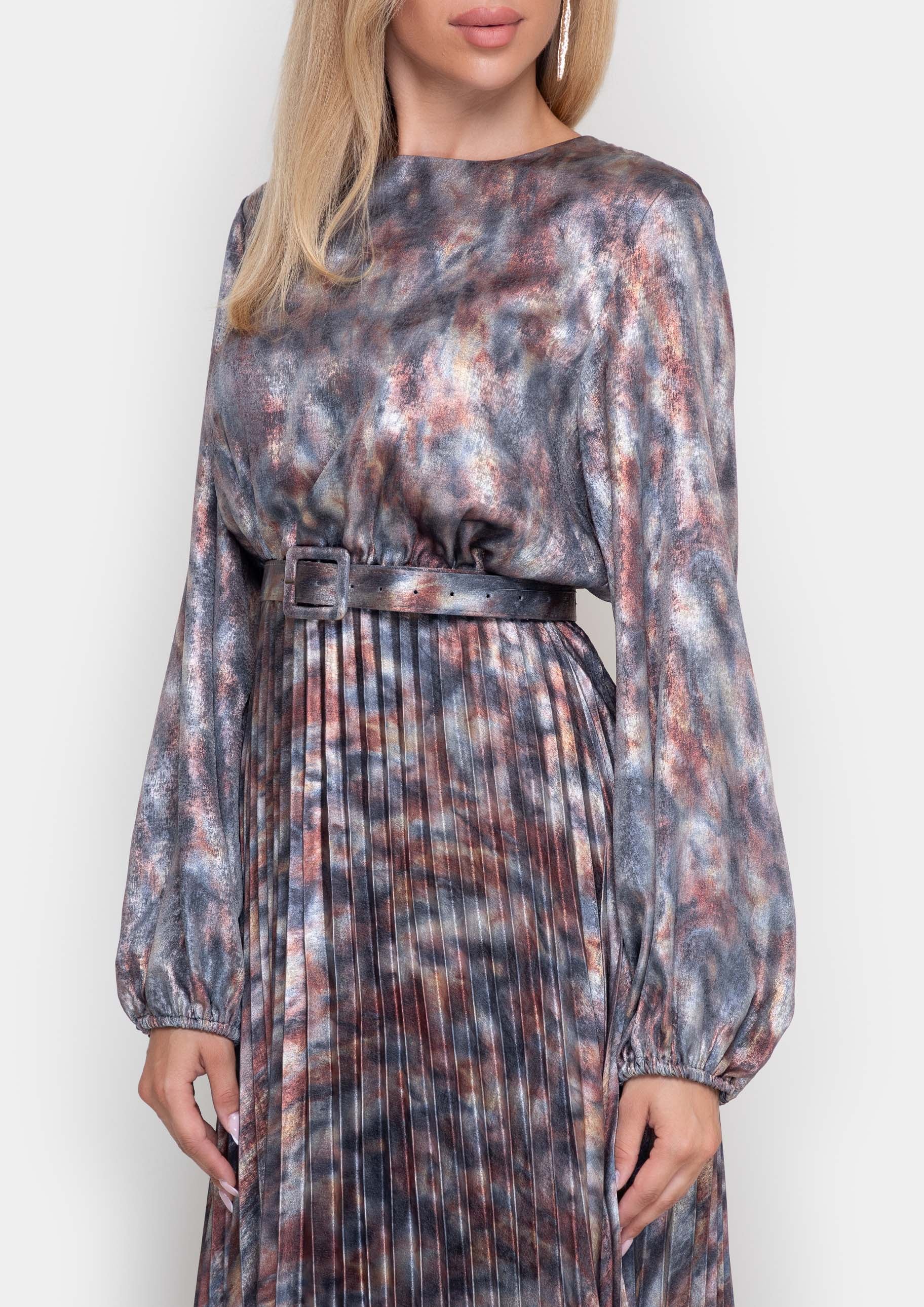 We offer a beautiful pleated dress by Samange, which will add elegance to any woman's closet. Made of high-quality polyester, the dress provides comfort of wearing and durability. The characteristics of the material, which is knitted, make it pleasant to the touch and fit perfectly on the figure. The round neckline and long sleeve are subtle details that add to the overall stylish look.