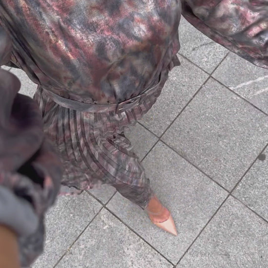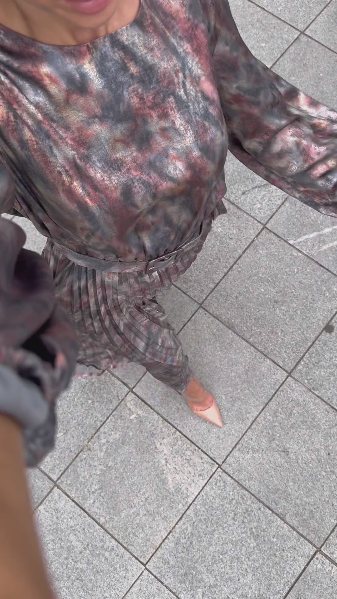 The dress has a maxi length and a flared cut, making it an ideal choice for everyday wear as well as for special occasions. The marbled pattern gives it a unique touch, and the zipper at the back allows for easy donning. Thanks to its carefully considered design, the dress not only looks beautiful, but also guarantees freedom of movement.