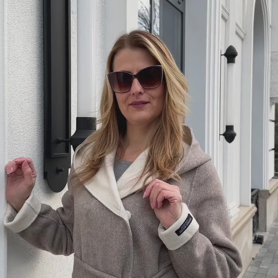 Made from soft wool blend fabric, the piece is available in a versatile Cappuccino shade, ensuring it can be effortlessly styled with a range of outfits. Its timeless design makes it a must-have addition to any wardrobe.