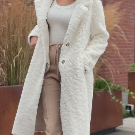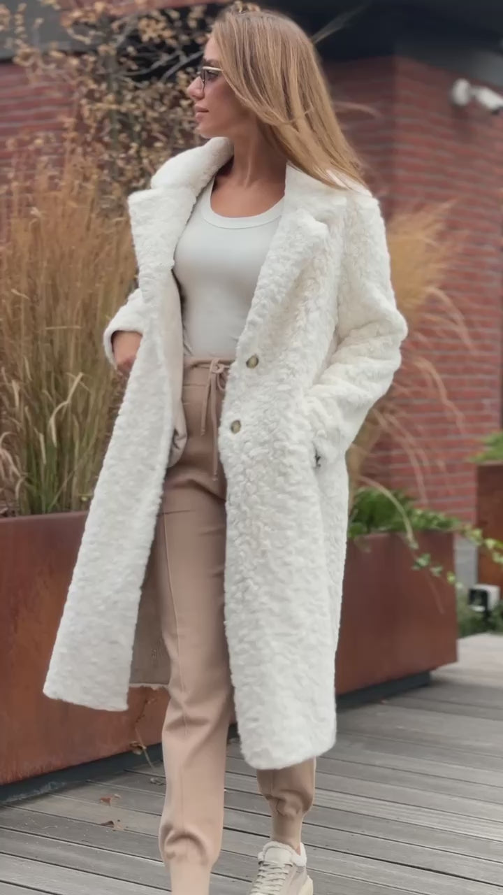 The reversible sheepskin coat is the perfect choice for cool days. Made from soft and pleasant-to-touch material, it provides comfort and warmth. One side is crafted from faux fur, adding elegance and sophistication to your look, while the other side features a smooth suede-like surface, offering a more understated, everyday appearance. Thanks to the reversible design, you can switch up your style depending on your mood or occasion. The classic cut of the coat makes it easy to pair with different wardrobe elements, while large buttons add a finishing touch.