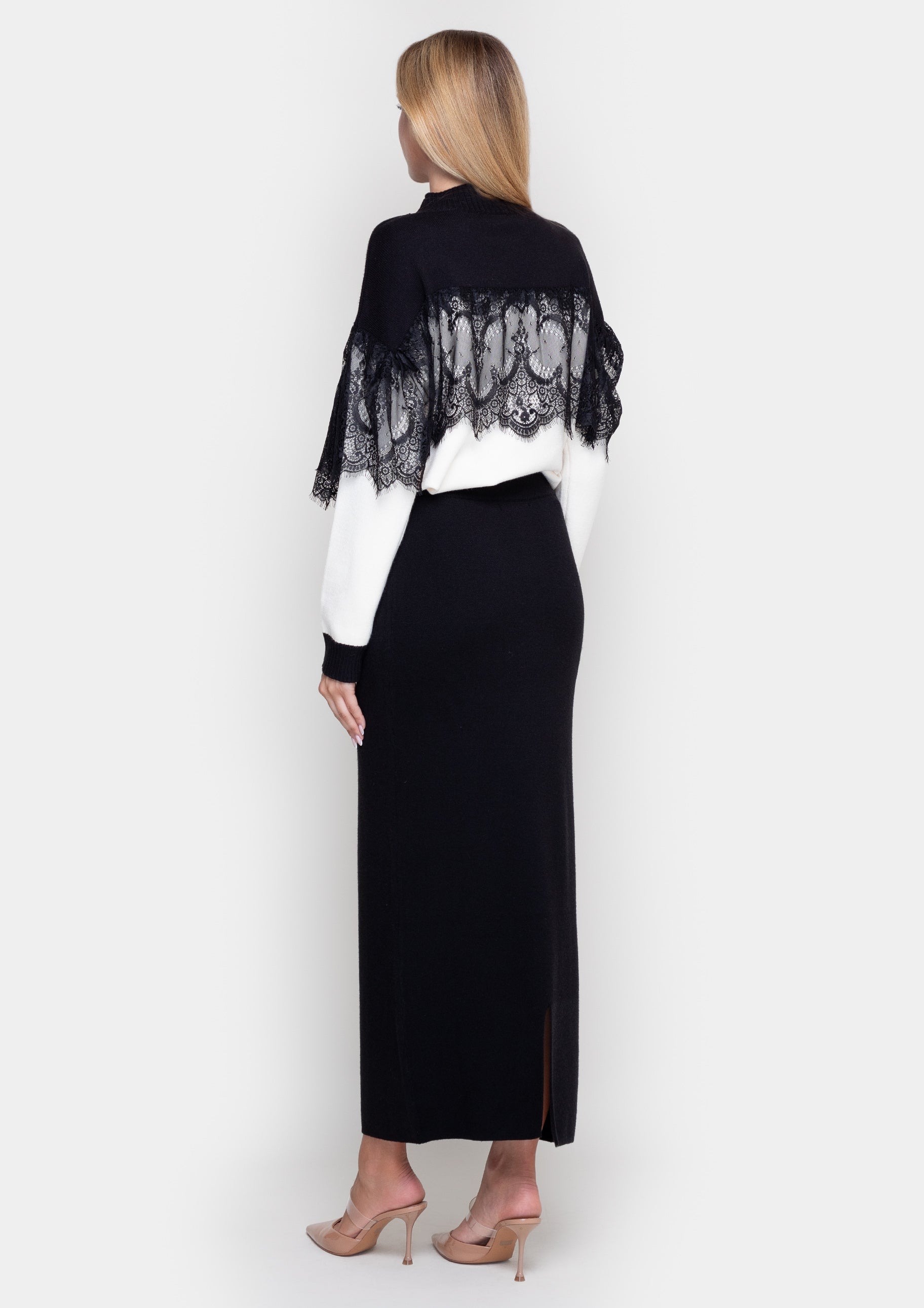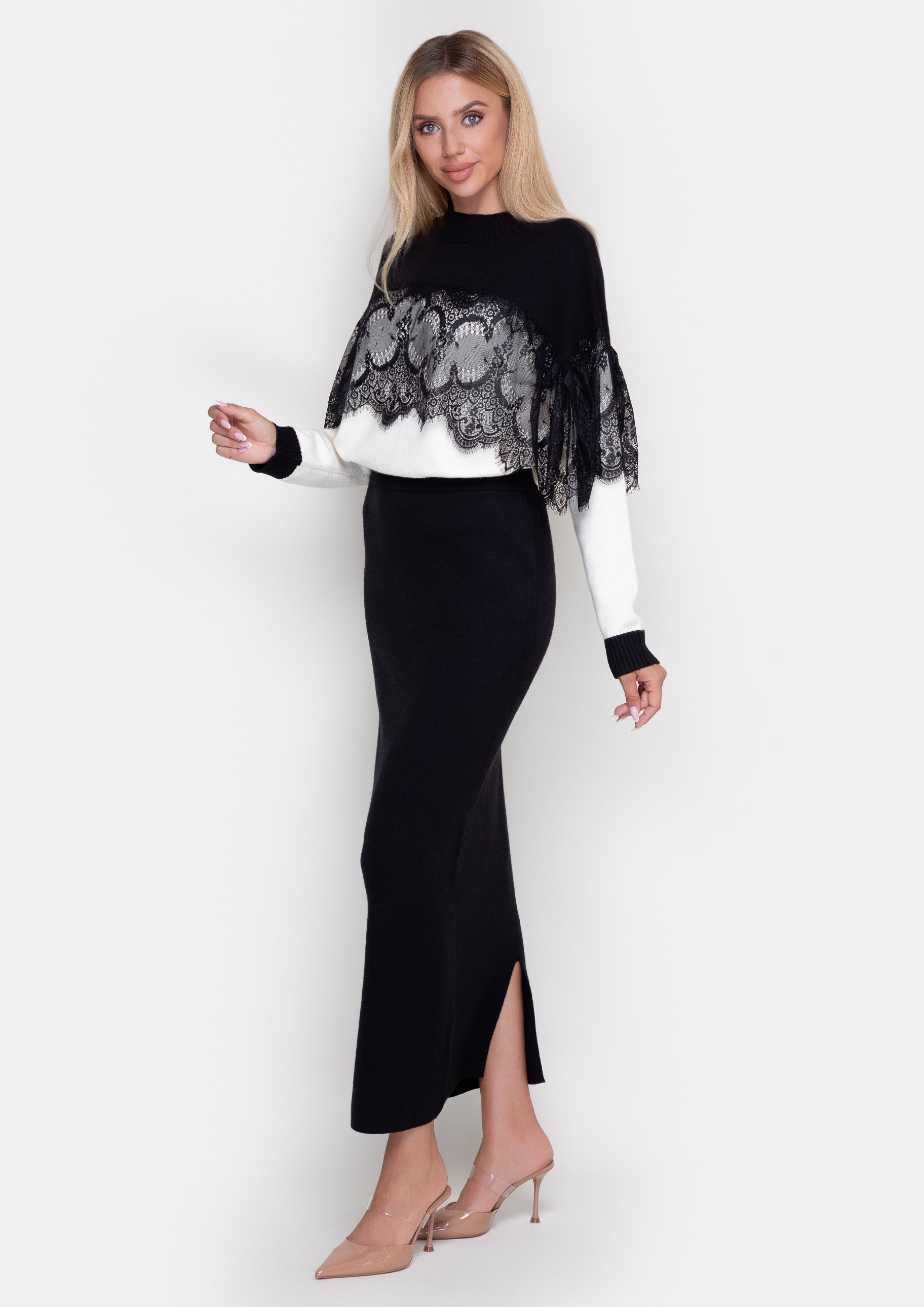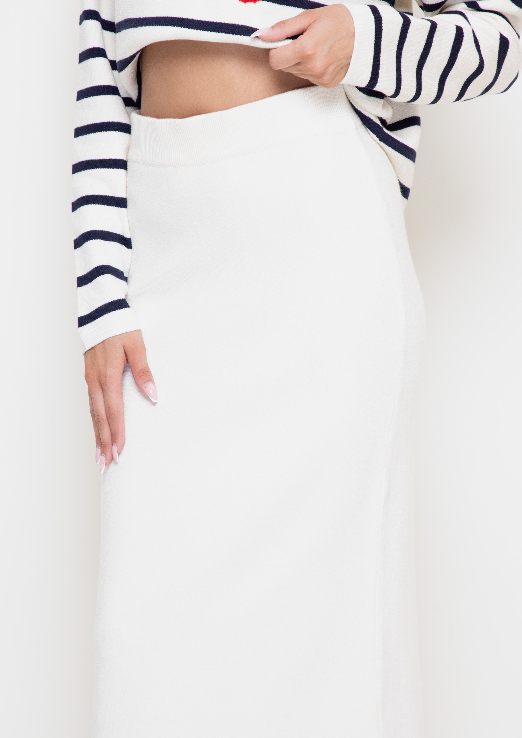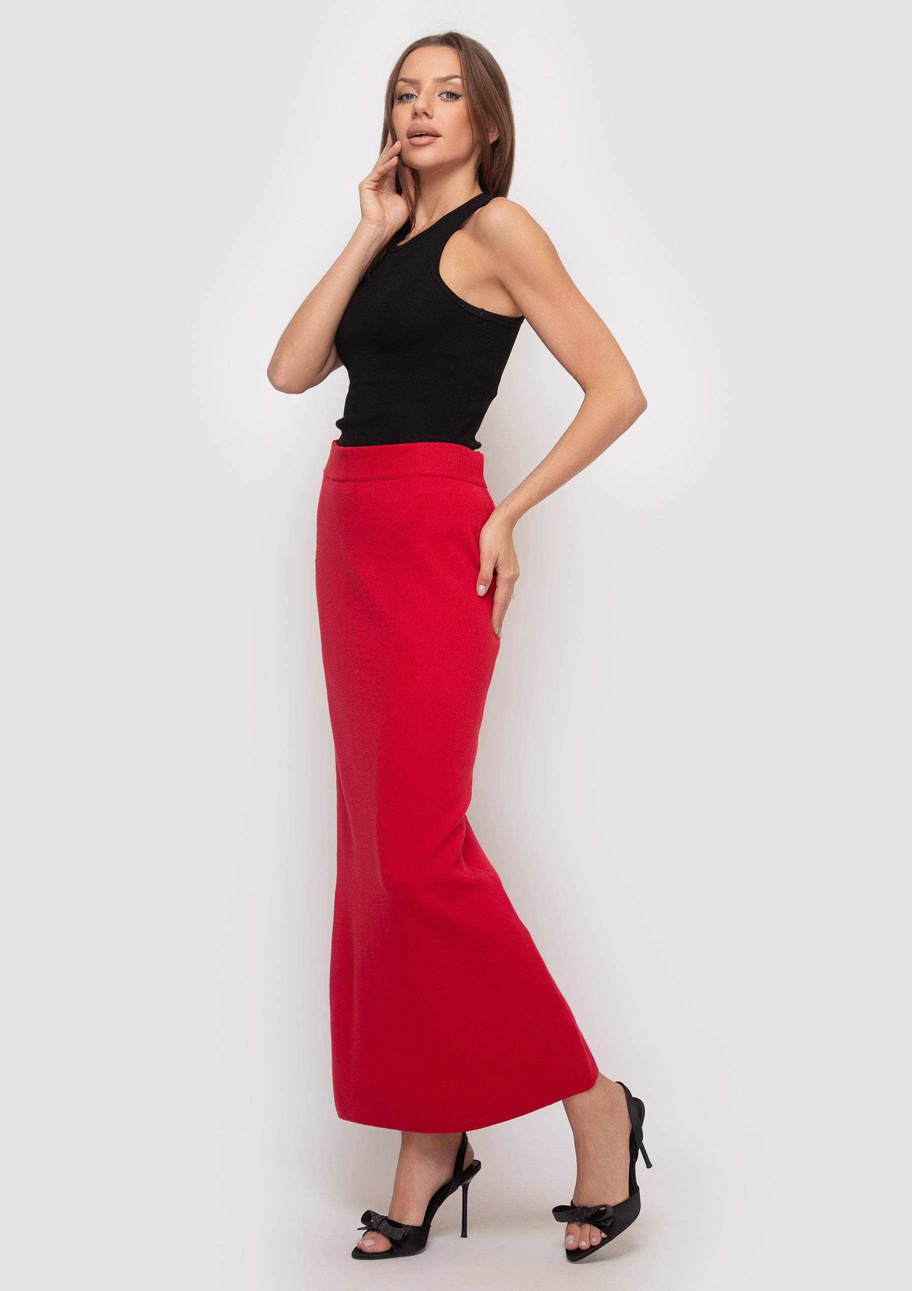 The knitted skirt is made in universal shades, which makes it easy to combine it with various wardrobe items. The skirt has an elegant silhouette. The belt provides a comfortable fit, emphasizing femininity and comfort. Thanks to the soft and elastic knitwear, the skirt is ideal for both everyday looks and more formal events. Combine it with sweatshirts, shirts or sweaters to create a stylish everyday look.