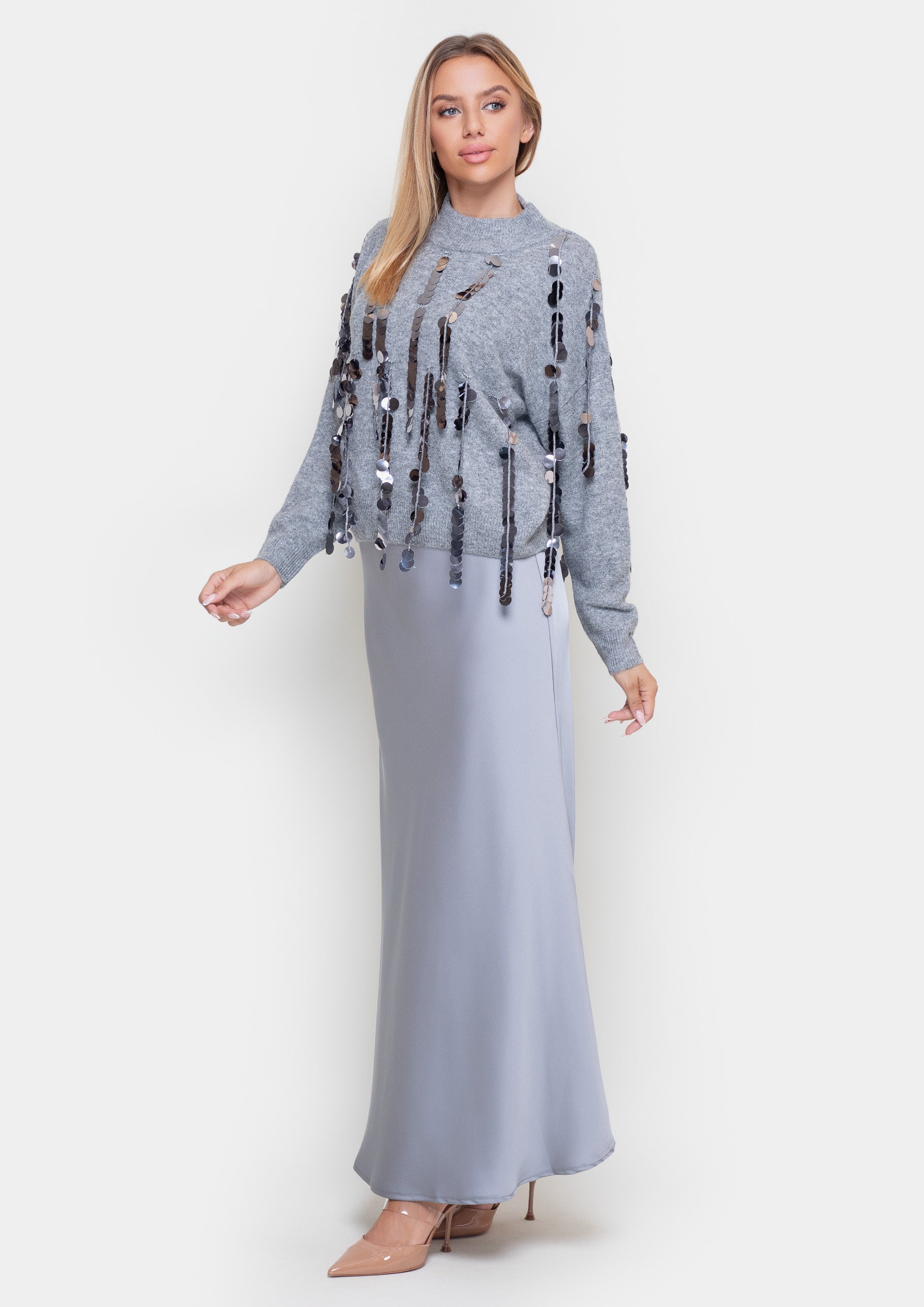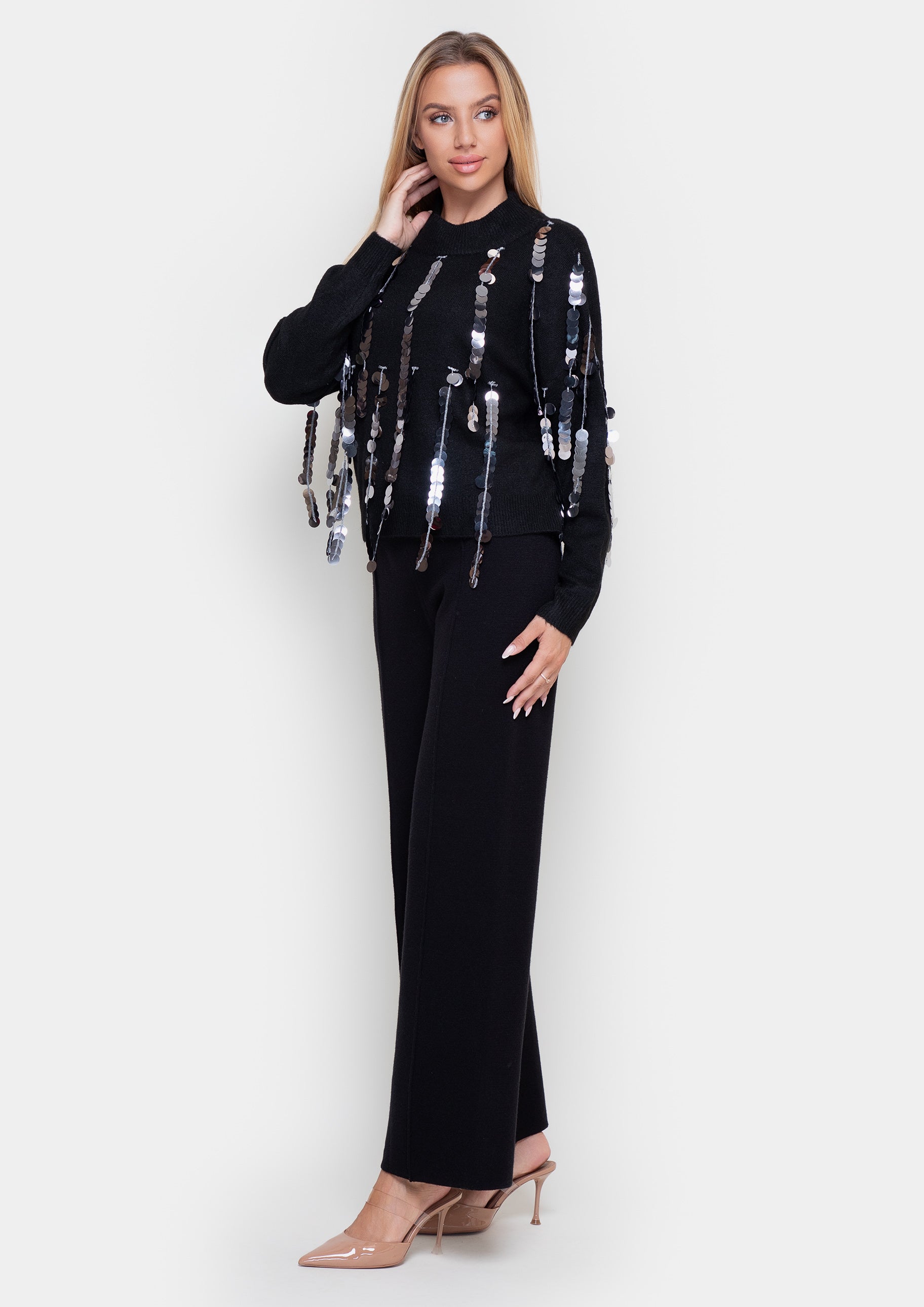 This stylish sweater will be a great addition to your wardrobe. Made from soft fabric, it provides comfort and warmth. Perfect for both casual wear and more casual outings.