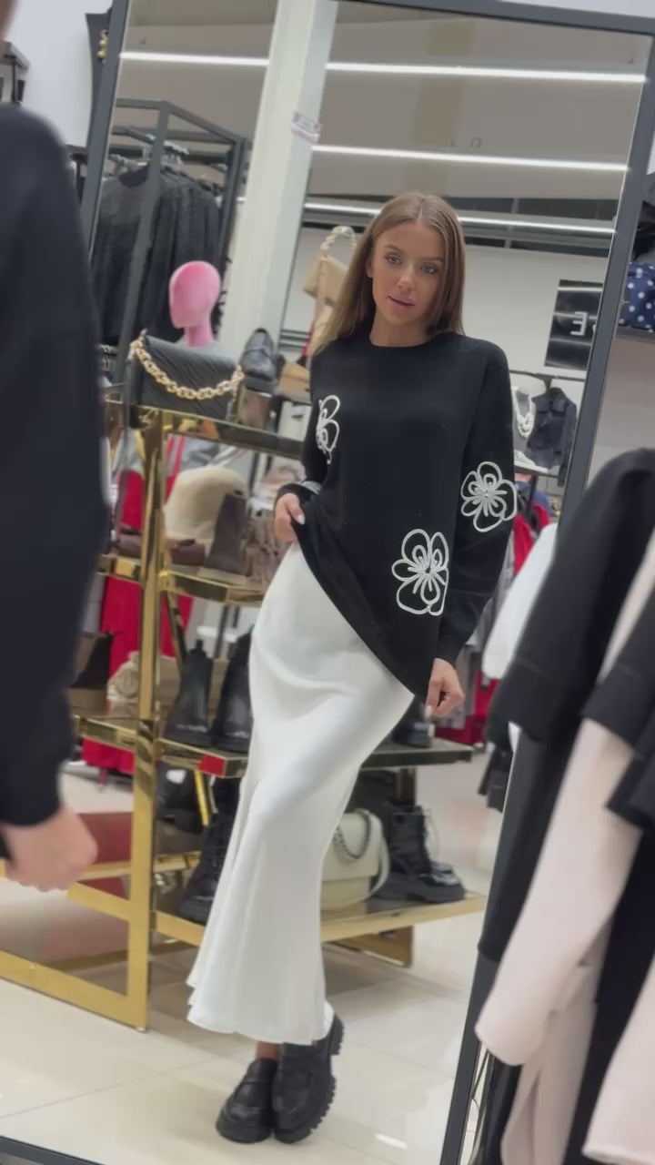 The length is thigh-length, making it the perfect choice for cold days when you want to feel stylish but comfortable at the same time. Thanks to its long sleeves and lack of fasteners, it is versatile enough to become a staple in your wardrobe. The classic color refers to the classics, and the beautiful floral pattern adds a unique touch that will make you stand out from the crowd.