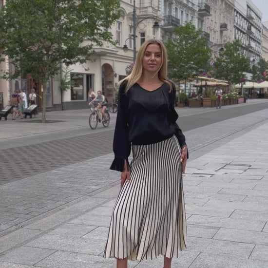 We offer an elegant floral jumper by Samange that combines exceptional style and wearing comfort. Made of high quality fabric consisting this jumper has a soft texture that ensures a pleasant wearing experience all day long. The model has a straight cut and a crew neckline, which gives it a modern yet elegant look. Short sleeves make this jumper a perfect choice for the transitional season and warm days.